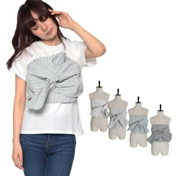 【あす楽対応】ビスチェ リボンビスチェ ストライプ リボン トップス レディース ベージュ グレー ブルー ブラック